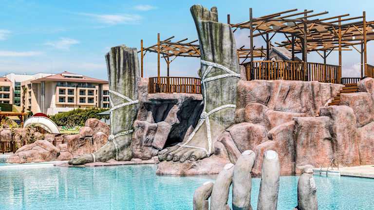 Only about 30 minutes from Antalya Airport, the resort has a 450-meter private coastline. It is close to Carya Golf, The Land of Legends, and the Belek shopping center, so you won’t get bored during your stay.