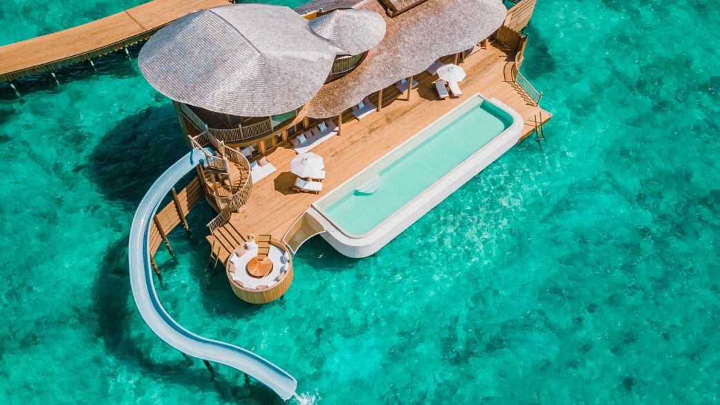 Imagine waking up in a villa floating above crystal-clear turquoise water. The roof opens to a sky full of stars, and a private slide takes you straight into the lagoon. That is the kind of dreamlike experience you can have at Soneva Jani, one of the most luxurious and exclusive resorts in the Maldives.