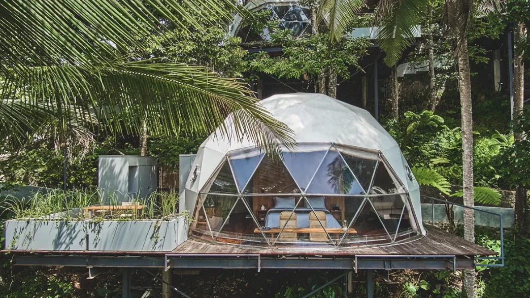 Imagine waking up to a symphony of flowing water and the soft glow of morning light breaking through the window of a luxury dome.